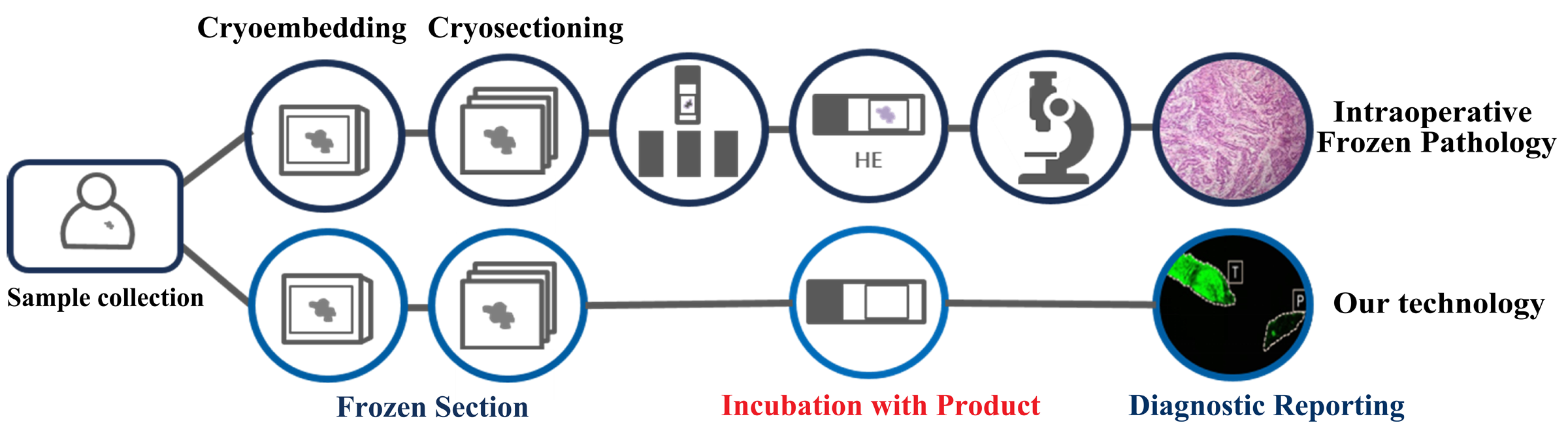 Intraoperative Pathological Diagnostic Innovation: Our advanced fluorescence-guided rapid detection technology utilizes near-infrared fluorescent probes targeting tumor-specific protein receptors, achieving precise tumor margin delineation through protein binding-induced fluorescence enhancement. This breakthrough enables real-time intraoperative cancer cell detection (4-minute analysis, >99% accuracy), significantly improving diagnostic precision over traditional frozen section methods, while reducing pathological workload and enhancing surgical safety through molecular-level margin assessment.