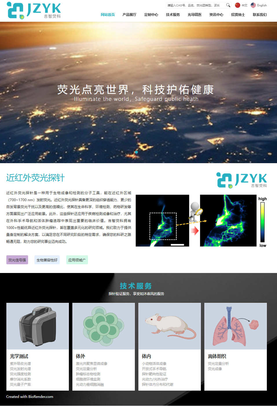 长春吉智荧科生物科技有限公司(吉智荧科,Lumiscience)是一家由海外归国学者创立的高科技企业,专注于生物医学技术的前沿研发与应用。公司致力于开发近红外荧光探针,为癌症的诊断和治疗提供创新解决方案,推动了从实验室到临床的技术转化,践行“Bench to Bedside”的理念。吉智荧科依托强大的科研实力和技术创新,不断提升生物医学领域的精准诊疗水平,为临床应用提供了高效可靠的工具。团队专注于近红外荧光探针研究已有十余年,积累了丰富的科研经验,成功为国内外众多高校、科研机构及医院提供了高质量的技术解决方案、产品和服务。