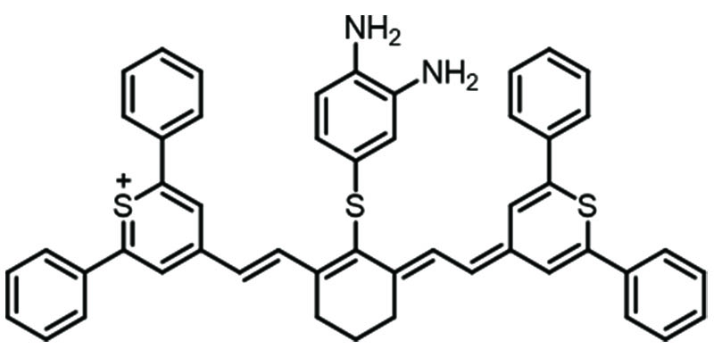 4-((E)-2-((E)-2-((3,4-diaminophenyl)thio)-3-(2-(2,6-diphenyl-4H-thiopyran-4-ylidene)ethylidene)cyclohex-1-en-1-yl)vinyl)-2,6-diphenylthiopyrylium.