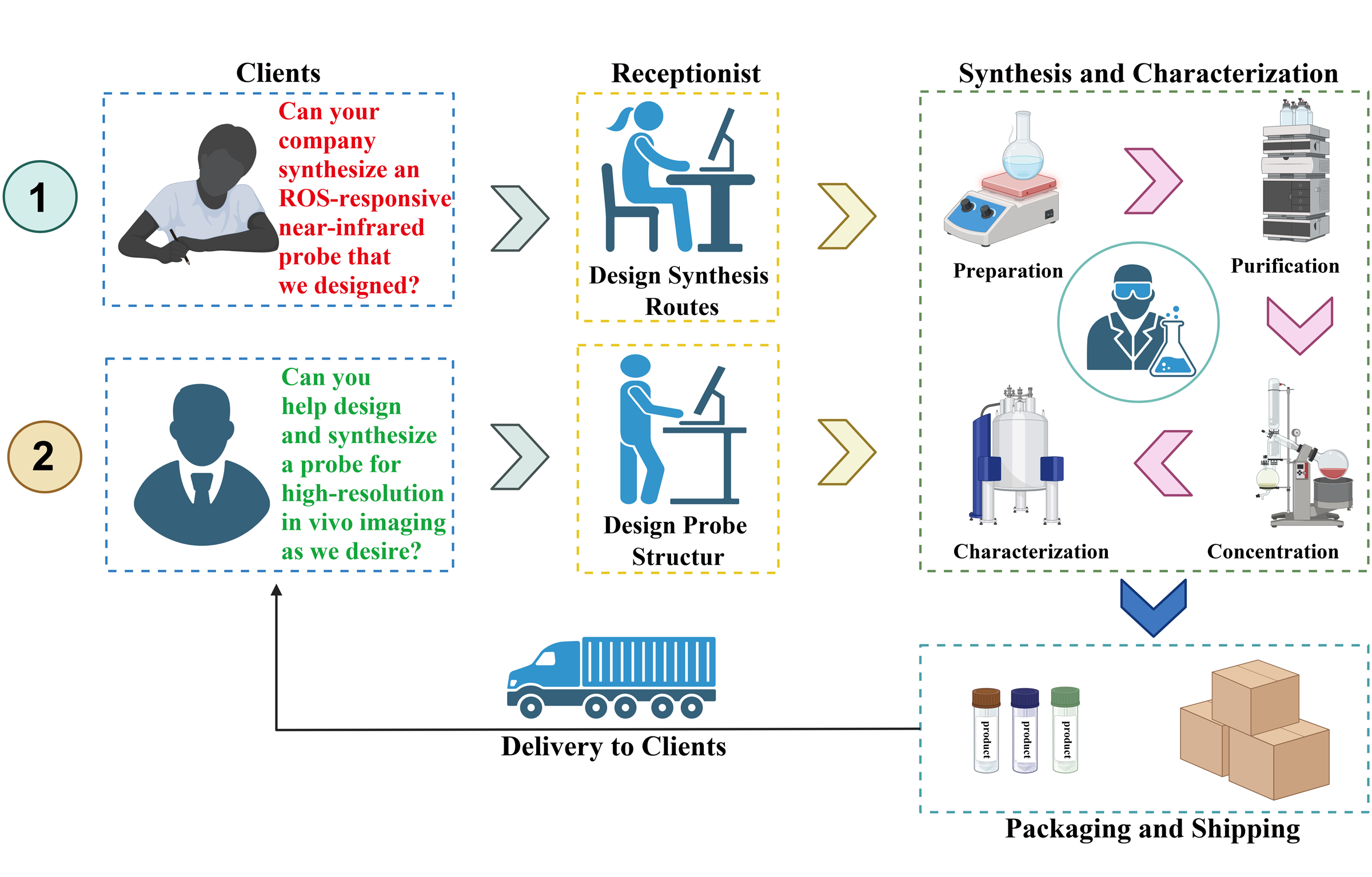 We offer top-tier probe synthesis and design services tailored to your specific needs. Leveraging our team's extensive experience in probe applications in biology, we provide professional solutions for performance optimization and guidance for various biomedical applications. We aim to deliver more personalized and considerate services in a shorter time frame, ensuring you receive the best custom-tailored solutions.