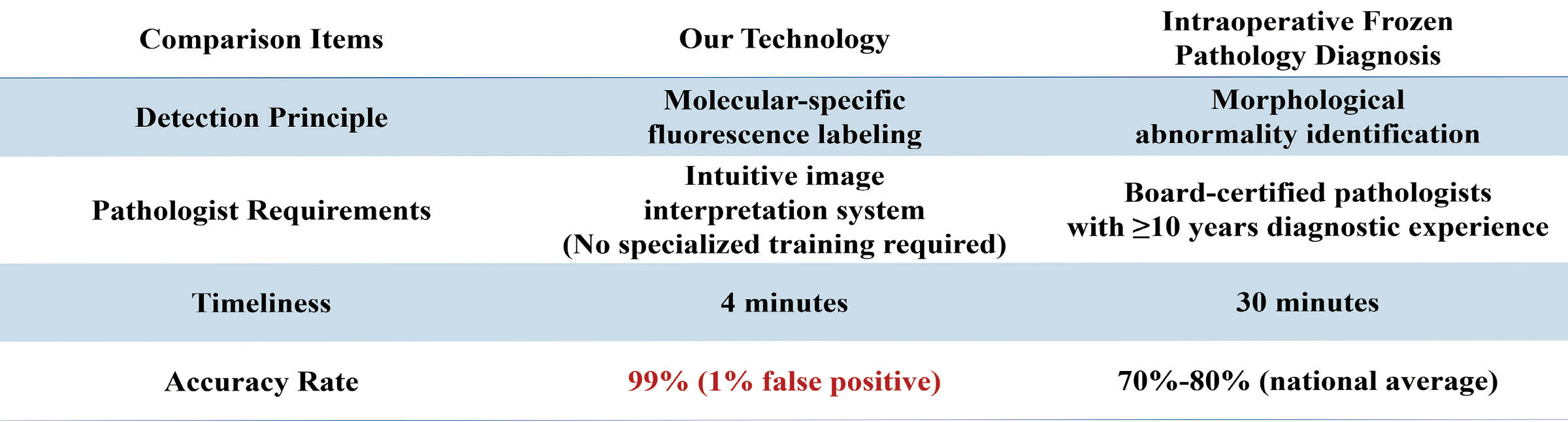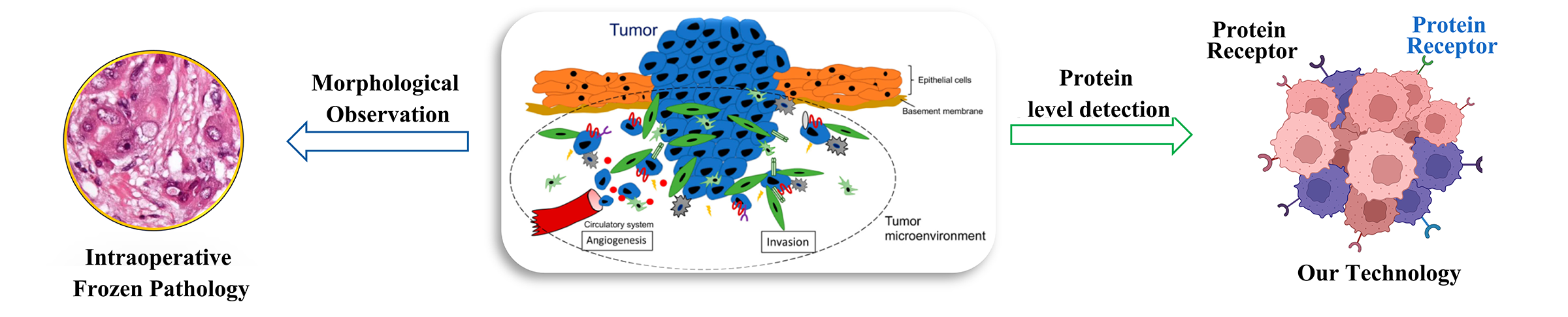 Intraoperative Pathological Diagnostic Innovation: Our advanced fluorescence-guided rapid detection technology utilizes near-infrared fluorescent probes targeting tumor-specific protein receptors, achieving precise tumor margin delineation through protein binding-induced fluorescence enhancement. This breakthrough enables real-time intraoperative cancer cell detection (4-minute analysis, >99% accuracy), significantly improving diagnostic precision over traditional frozen section methods, while reducing pathological workload and enhancing surgical safety through molecular-level margin assessment.