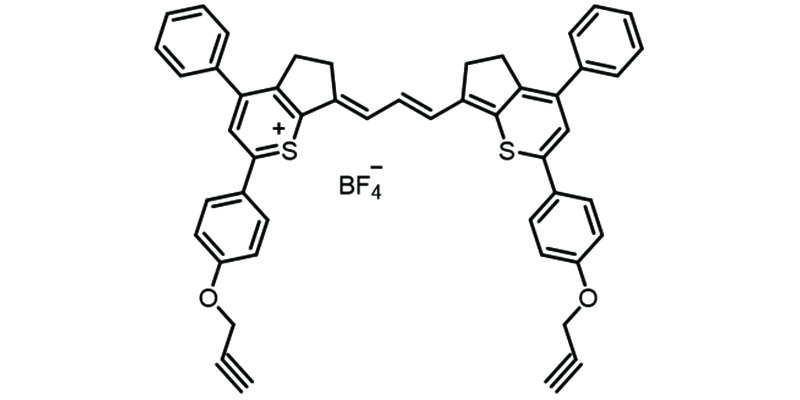 (E)-4-phenyl-7-((E)-3-(4-phenyl-2-(4-(prop-2-yn-1-yloxy)phenyl)-5,6-dihydrocyclopenta[b]thiopyran-7-yl)allylidene)-2-(4-(prop-2-yn-1-yloxy)phenyl)-6,7-dihydro-5H-cyclopenta[b]thiopyran-1-ium.