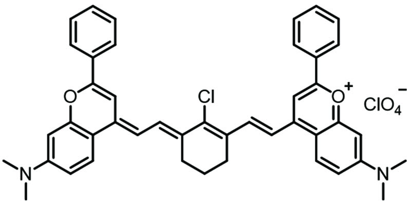 4-((E)-2-((E)-2-chloro-3-(2-((E)-7-(dimethylamino)-2-phenyl-4H-chromen-4-ylidene)ethylidene)cyclohex-1-en-1-yl)vinyl)-7-(dimethylamino)-2-phenylchromenylium perchlorate
