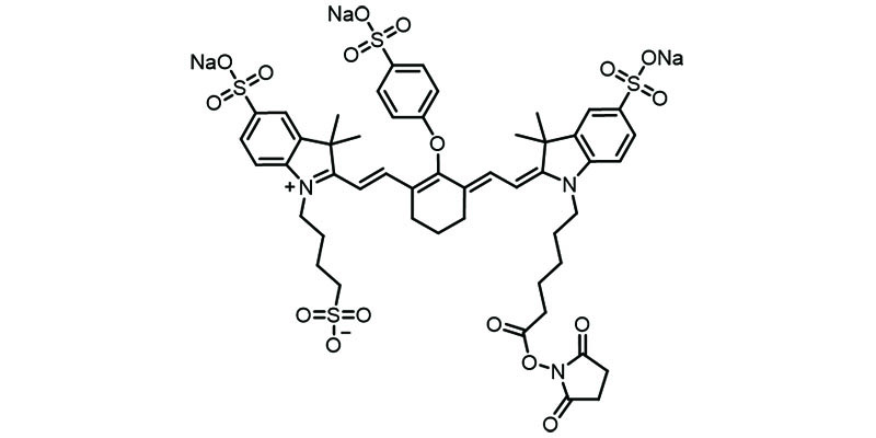 800CW NHS ester是一种胺反应性近红外高水溶性荧光染料,可以直接标记生物分子,如第一抗体、第二抗体、肽等