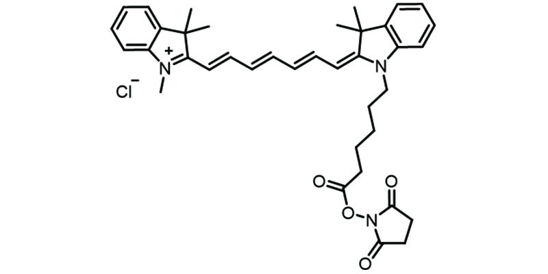 2-((1E,3E,5E)-7-((E)-1-(6-((2,5-dioxopyrrolidin-1-yl)oxy)-6-oxohexyl)-3,3-dimethylindolin-2-ylidene)hepta-1,3,5-trien-1-yl)-1,3,3-trimethyl-3H-indol-1-ium chloride.